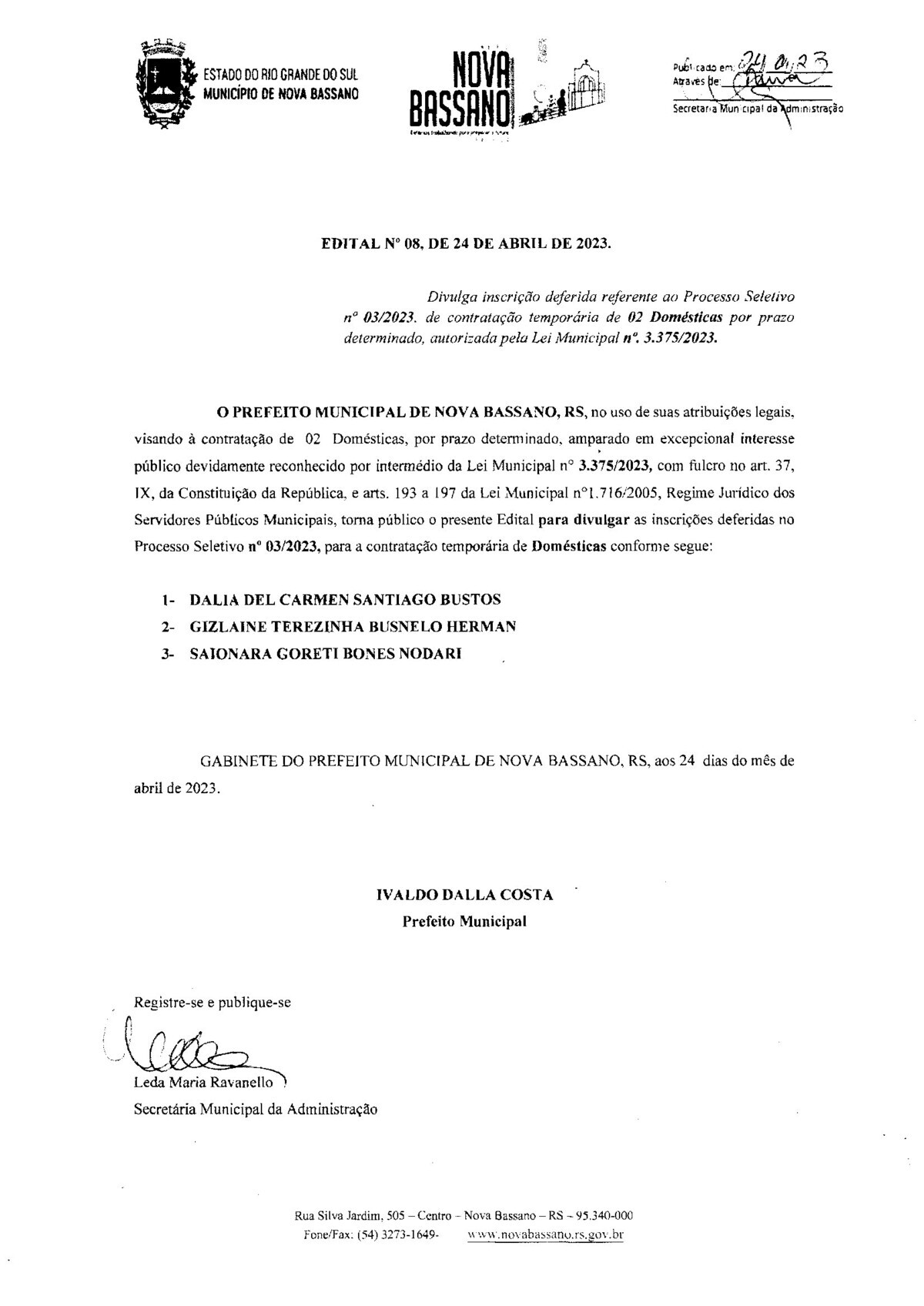 𝙀𝙙𝙞𝙩𝙖𝙡 𝙣º 08, 𝙙𝙚 24 𝙙𝙚 𝙖𝙗𝙧𝙞𝙡 𝙙𝙚 2023 - 𝙄𝙣𝙨𝙘𝙧𝙞çõ𝙚𝙨 𝙙𝙚𝙛𝙚𝙧𝙞𝙙𝙖𝙨 𝙘𝙤𝙣𝙩𝙧𝙖𝙩𝙖çã𝙤 𝙩𝙚𝙢𝙥𝙤𝙧á𝙧𝙞