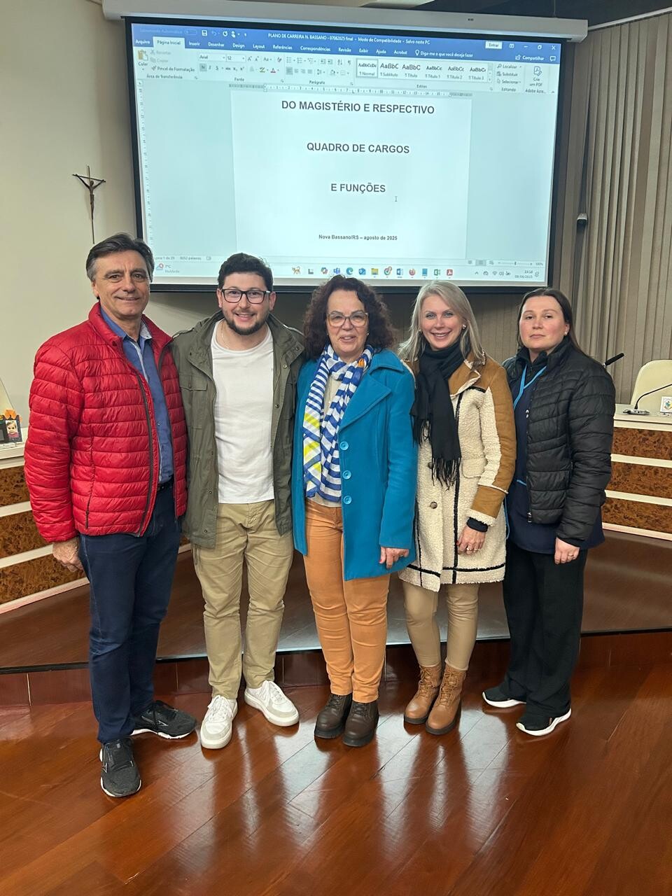 No dia 8 de agosto, às 18 horas, reuniram-se na Câmara de Vereadores o Poder Legislativo e o Poder Executivo, juntamente com os professores ativos e inativos, para a apresentação da proposta de atualização do Plano de Carreira do Magistério de Nova Bassano.