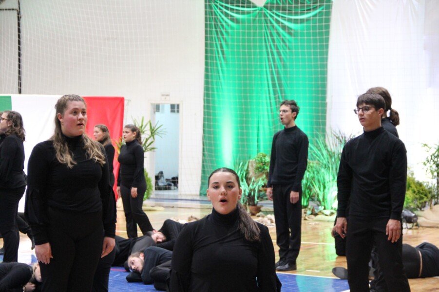 Na noite de ontem, 17 de agosto, o município de Nova Bassano foi palco de um momento cultural marcante: os grupos Coro Gioventú in Cantata di Marostica e Coro Giovani Voci Bassano di Bassano del Grappa, ambos da Itália, apresentaram-se no Ginásio Municipal. O espetáculo, denominado "Motus", ilustra a vinda dos italianos para o Brasil e a saudade de casa. Fizeram-se presentes no evento o Prefeito Municipal, João Paulo Maroso, o Vice-prefeito, Antônio Tapparo, Vereadores Municipais, a presidente da Associação Vêneta de Nova Bassano (AVENOBA), Andreia Pelle, além dos demais membros. O público bassanense também marcou sua presença no evento, em grande escala. Em sua chegada ao solo bassanense, no domingo à tarde, o grupo foi recebido calorosamente na sede da Associação Vêneta de Nova Bassano (AVENOBA). Após o acolhimento, houve uma integração entre membros da associação e os grupos italianos, com um café colonial típico dos descendentes italianos da região. Os grupos estarão em turnê pelo Brasil e Uruguai, e optaram por passar dois dias em Nova Bassano. Os coros são compostos por 45 jovens, acompanhados por 7 integrantes da equipe de apoio, totalizando 52 pessoas, que permanecem na cidade nos dias 17 e 18 de agosto. Fotos: Michele Berlatto / Jornal Correio Livre / Assessoria de Imprensa de Nova Bassano