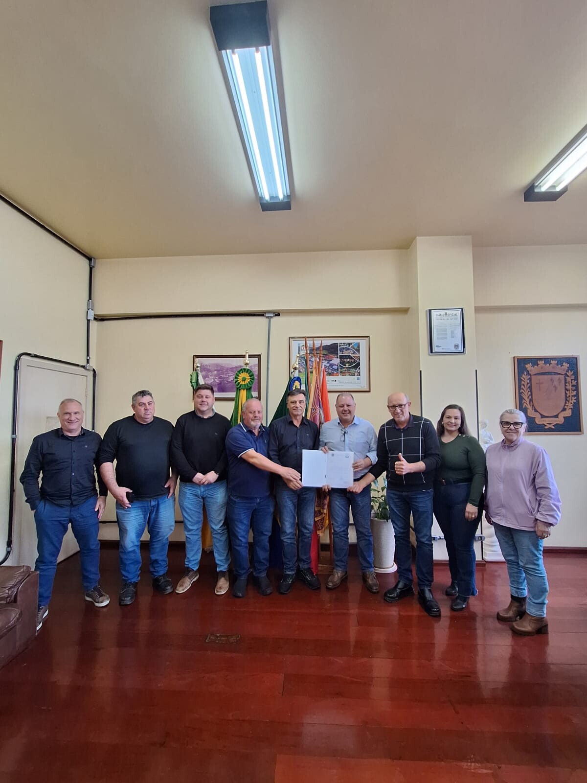 Estiveram presentes também, a Secretária da Administração Leda Maria Ravanello, a Secretária da Saúde Aline Luvison, o Vereador Jean Ansolin e o Capataz Jair Palla.