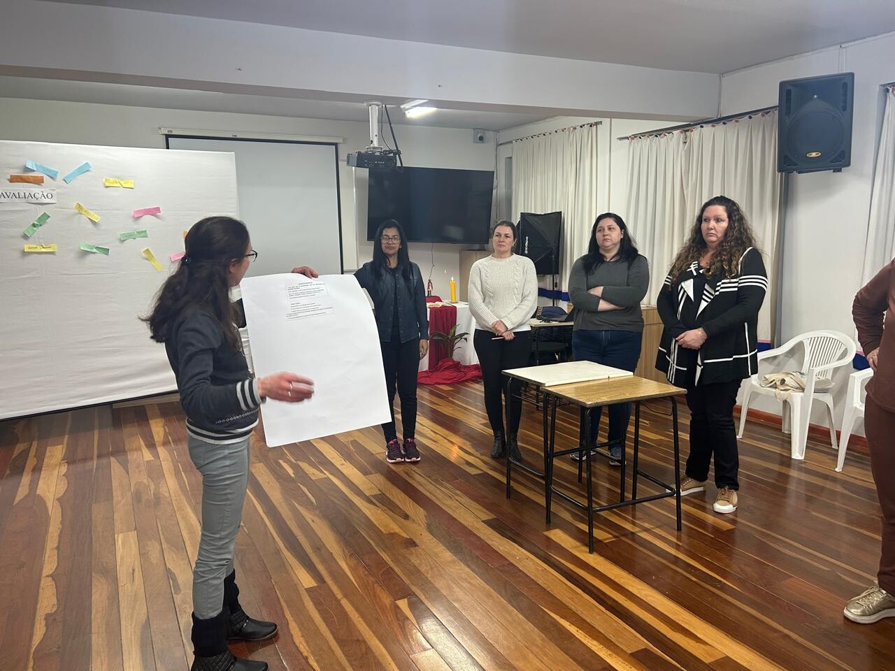 A temática trabalhada no encontro foi “Avaliação e Planejamento na Alfabetização” pois é fundamental refletirmos sobre o nosso fazer pedagógico. Avaliar não é apenas verificar resultados, mas compreender processos, identificar avanços e desafios, e planejar caminhos que respeitem o ritmo e as necessidades de cada estudante.