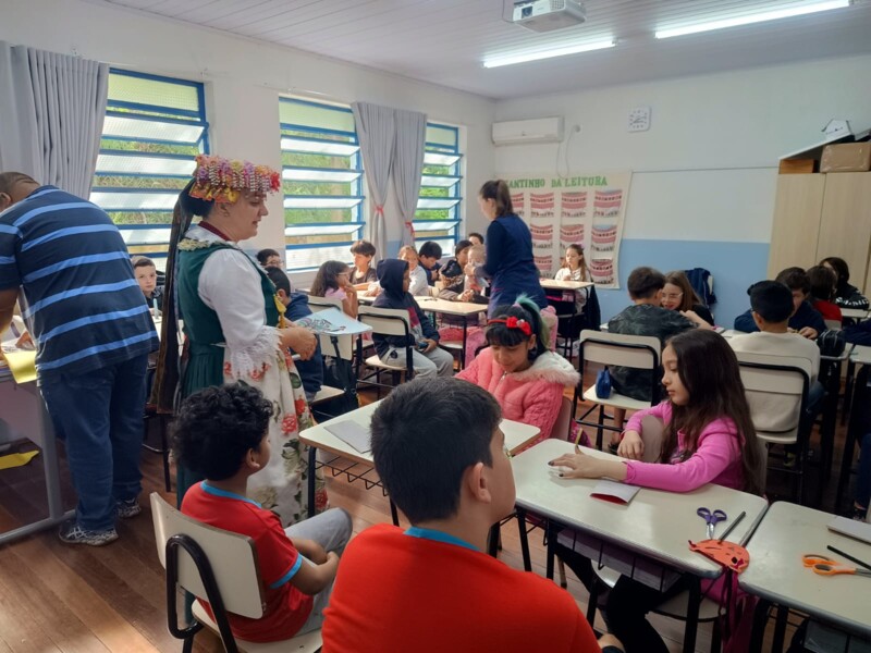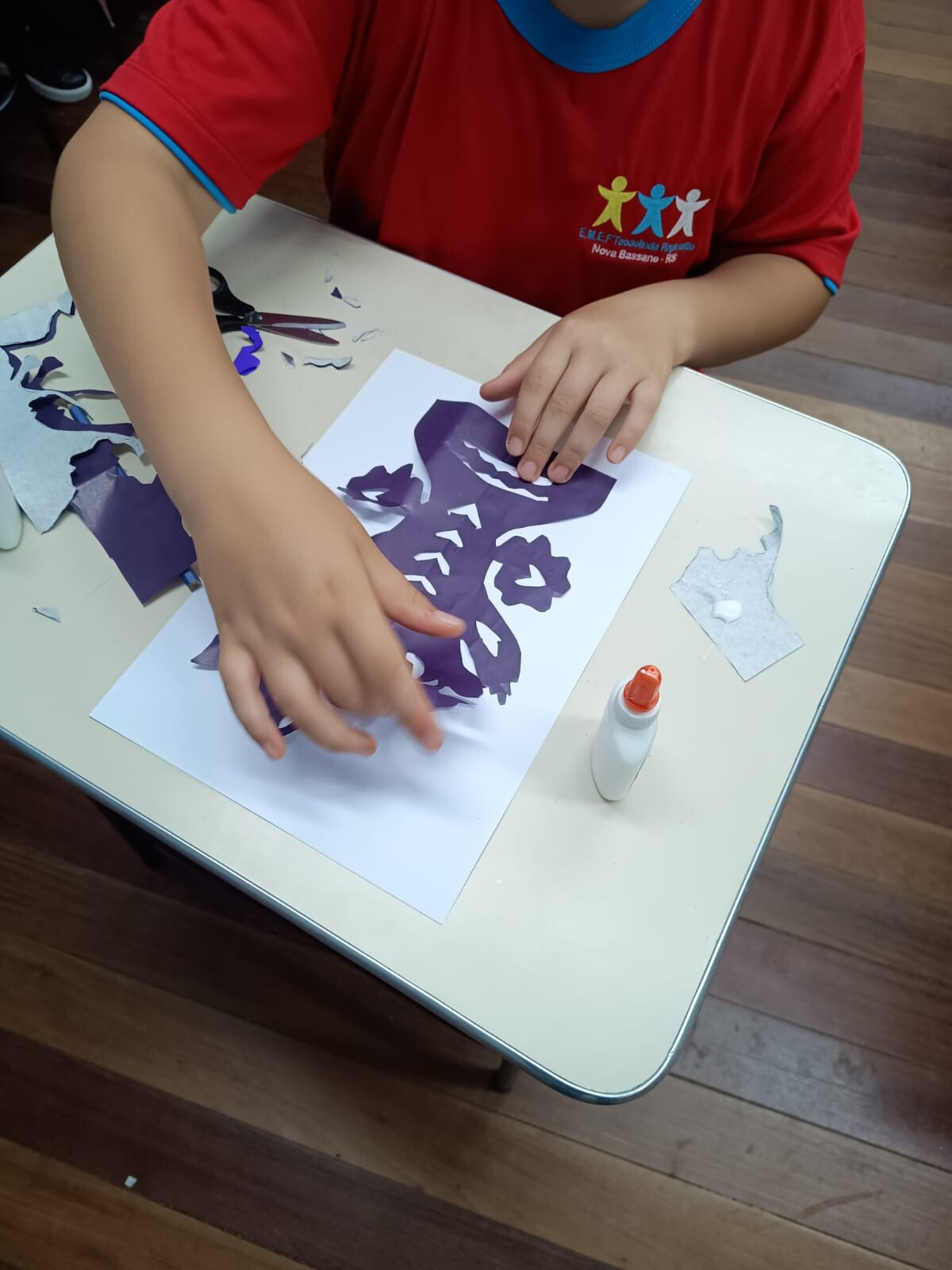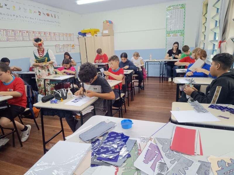 Nas fotos, a oficina foi realizada na EMEF Teodolinda Reginatto.