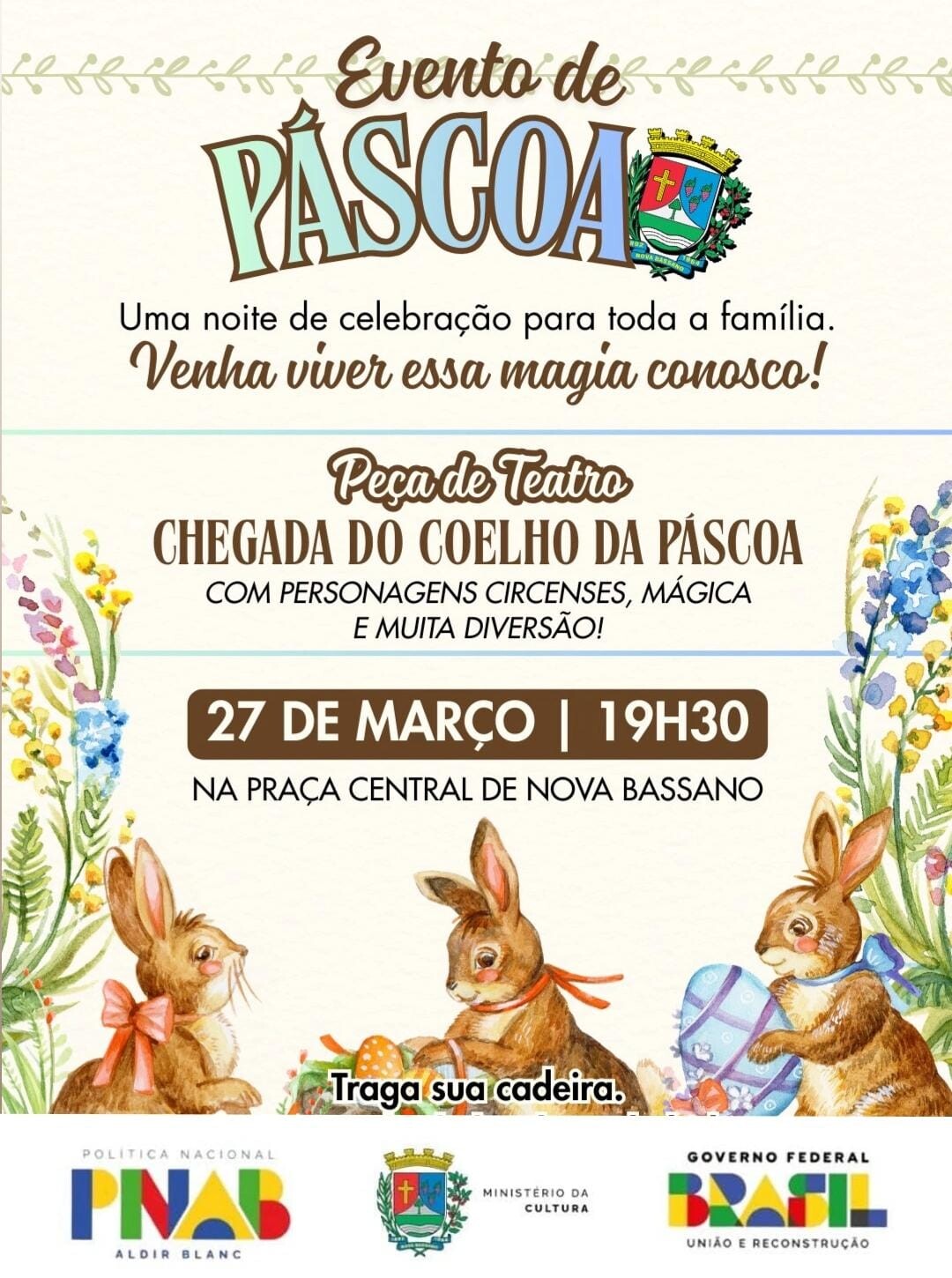 Vem aí, o evento de Páscoa no dia 27 de março às 19:30 horas na Praça Colbachini.