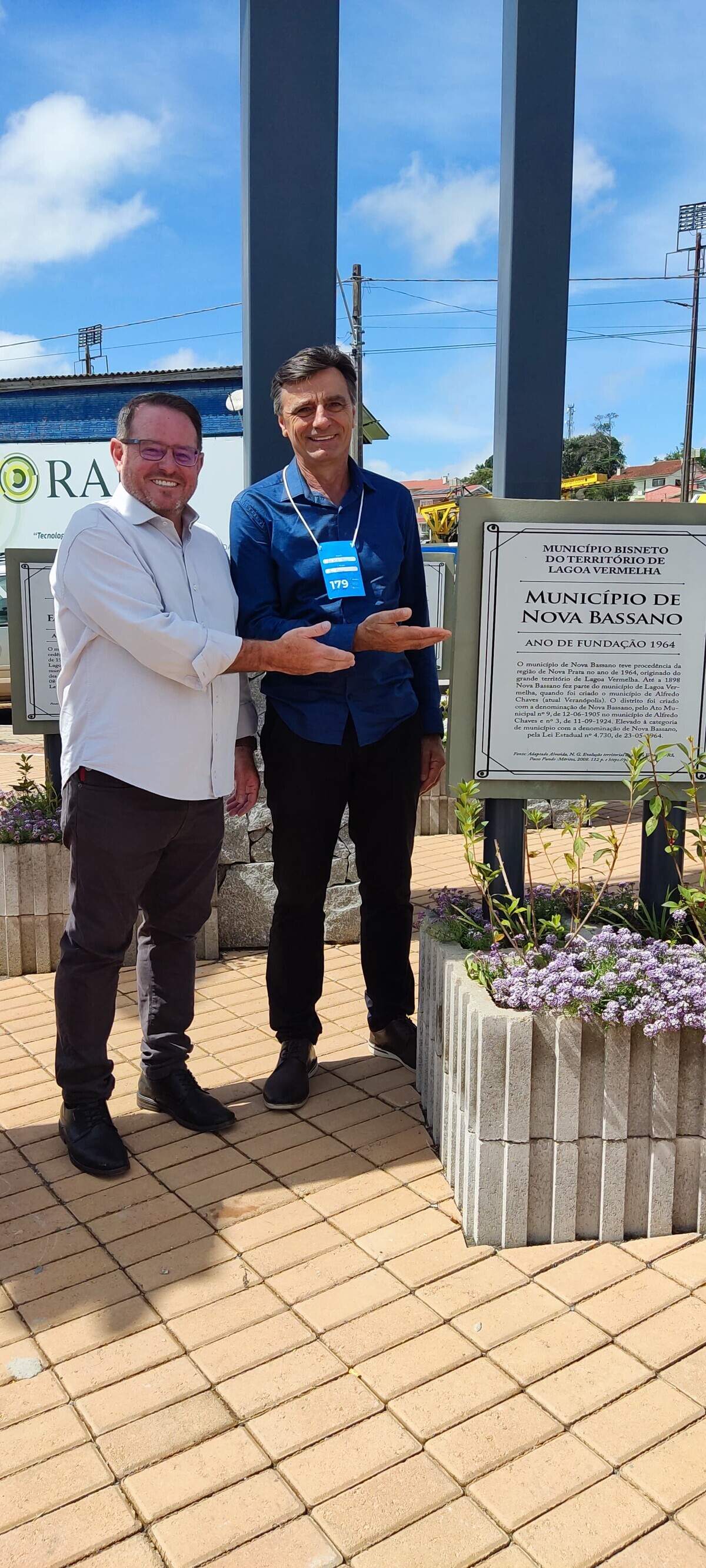 Na oportunidade o Prefeito em exercício João Paulo encontrou-se com o Deputado Estadual e Secretário de Desenvolvimento Rural Ronaldo Santini, filho de Lagoa Vermelha.