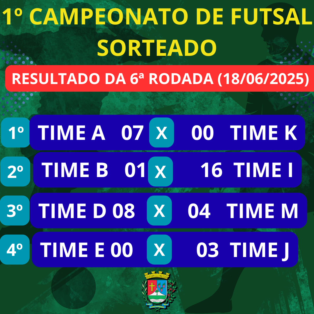 Confira os resultados dos jogos da 6ª fase do 1º Campeonato de Futsal Sorteado de Nova Bassano, que aconteceu na noite de sexta-feira.