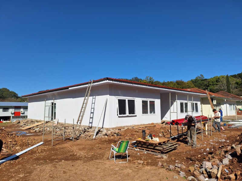 Segue em andamento a ampliação Escola Municipal de Educação Infantil Magia e Saber que contará com 4 salas de aula, 2 banheiros, 2 depósitos.
