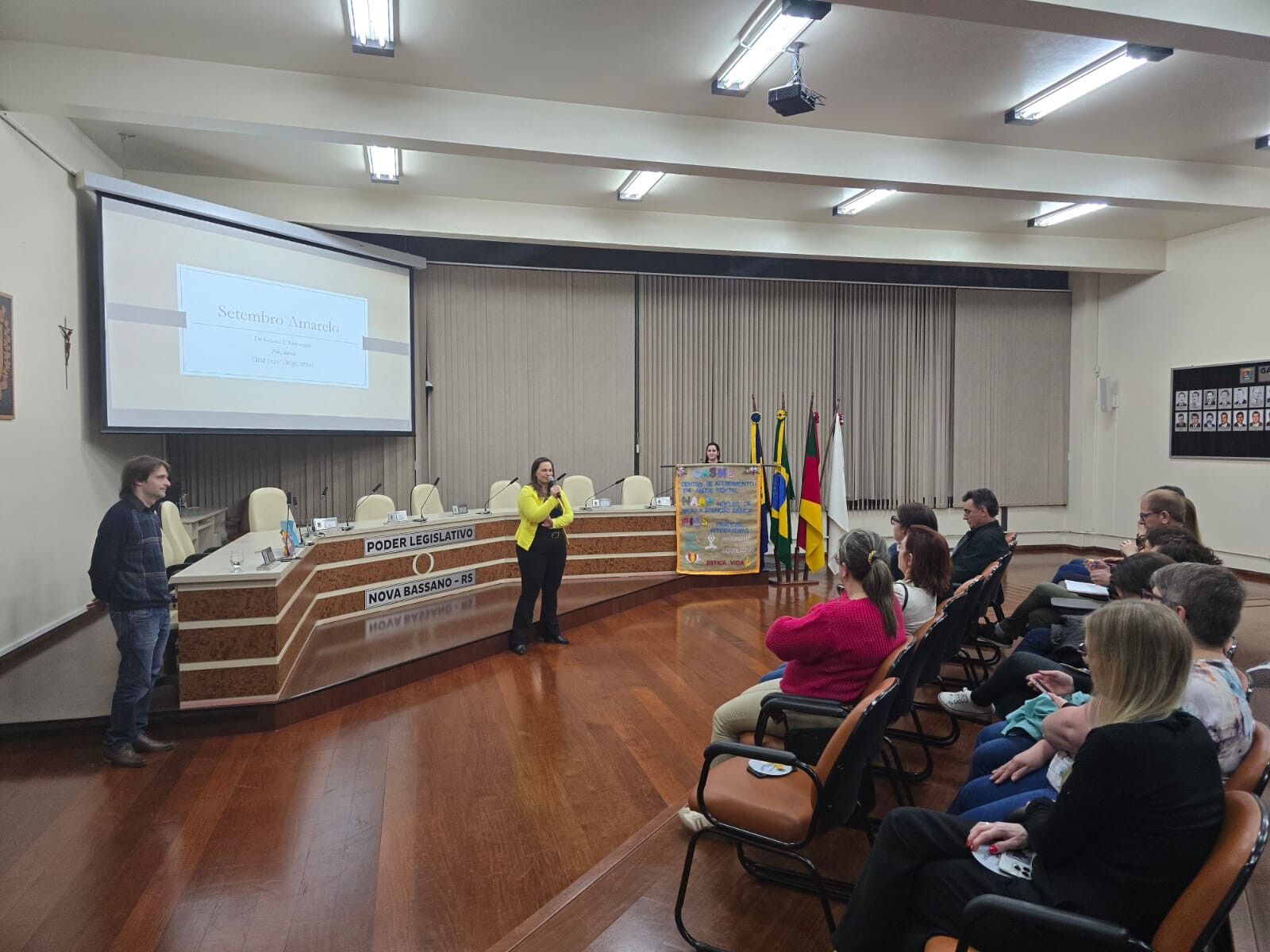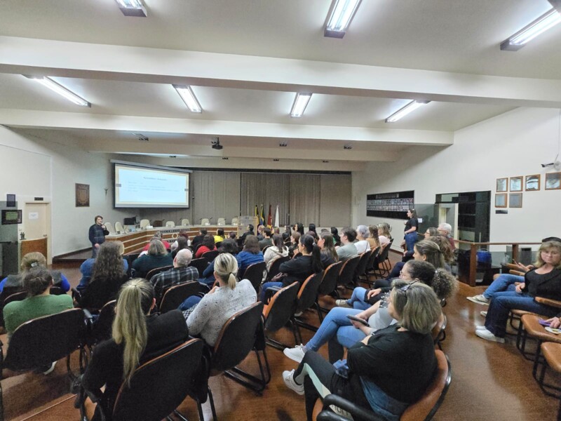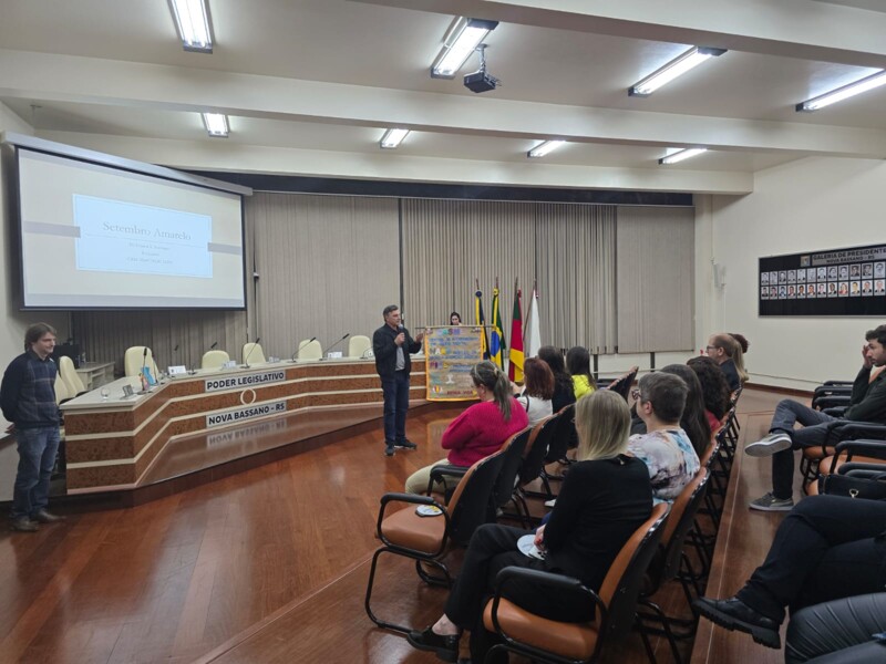 Na noite de 16 de setembro, aconteceu na Câmara Municipal de Vereadores a palestra “Setembro Amarelo: o escutar como caminho.” O evento fez parte da programação da campanha Setembro Amarelo no Município, a qual objetiva oportunizar uma reflexão sobre a valorização da vida e a prevenção ao suicídio, e teve como público alvo os trabalhadores da rede de saúde do Município, bem como trabalhadores de toda a rede de atendimento.