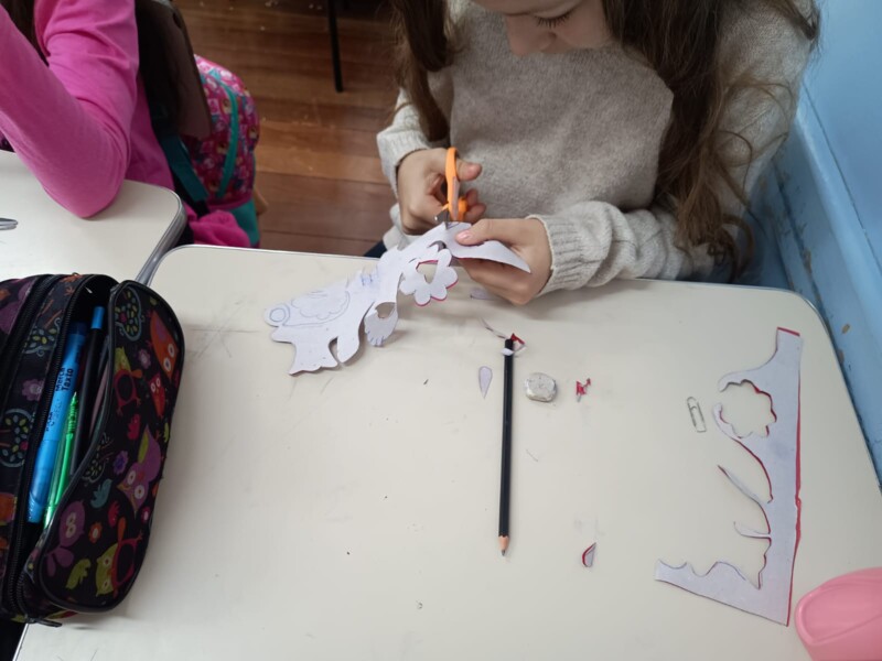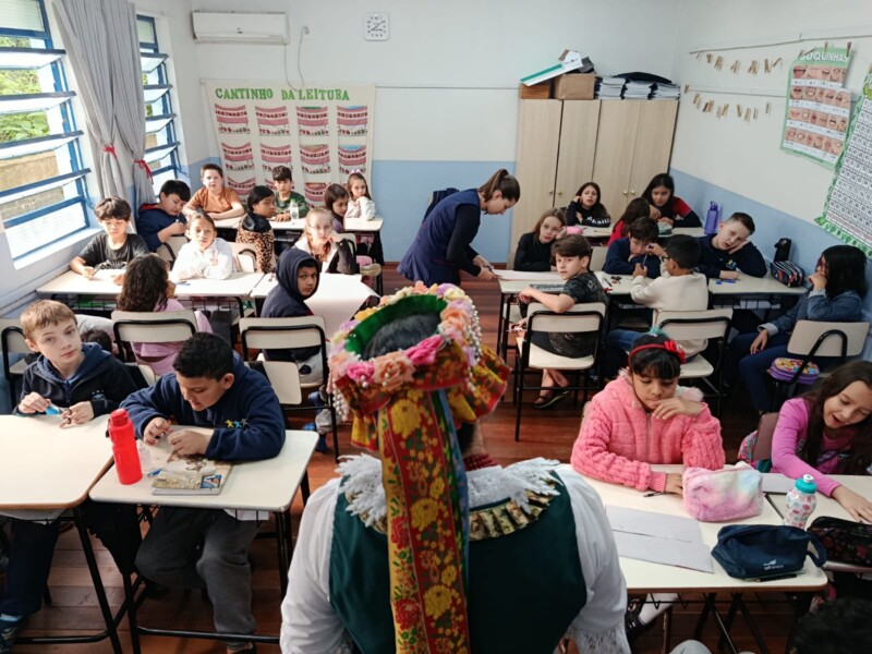 Nas fotos, a oficina foi realizada na EMEF Teodolinda Reginatto.