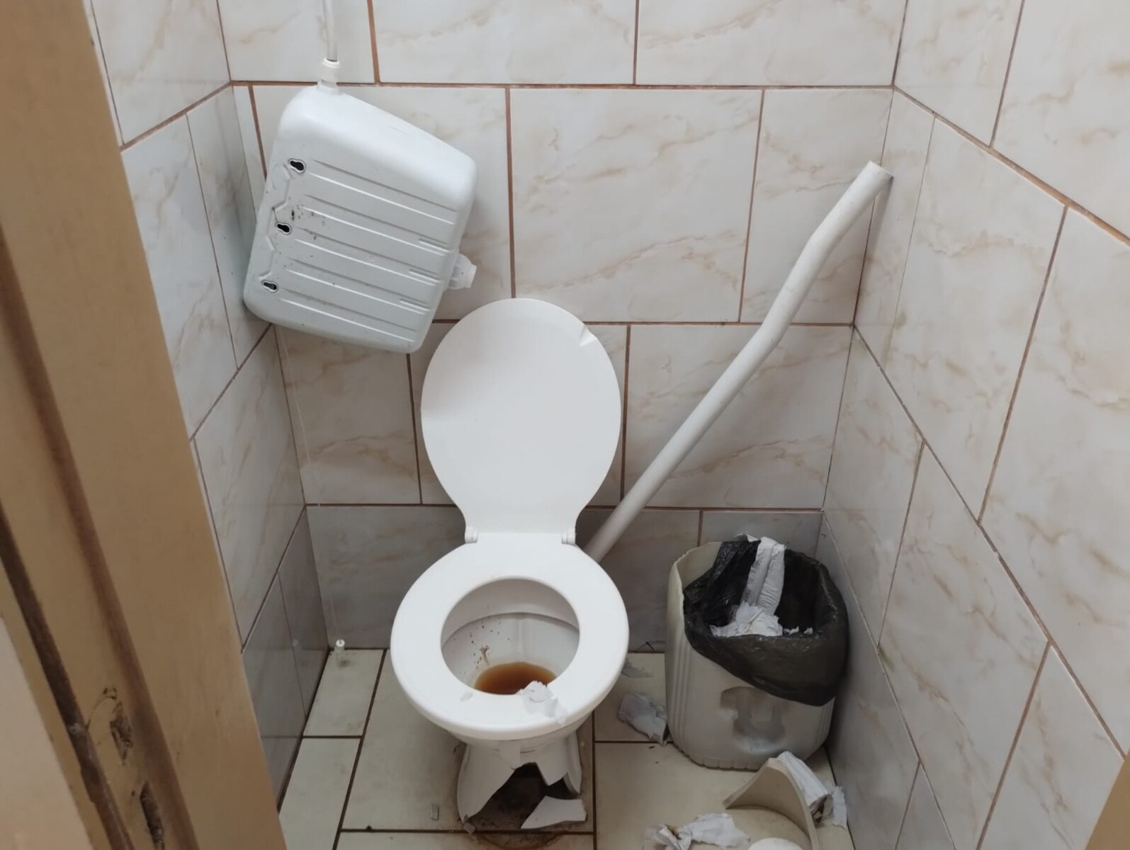 Mais uma vez, a cena se repete nos banheiros públicos ao lado do Ginásio Municipal Zeferino T. Zottis.